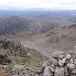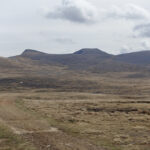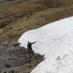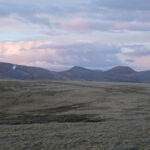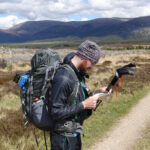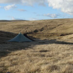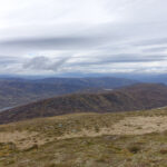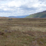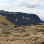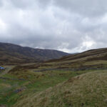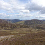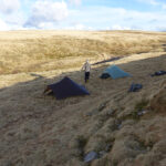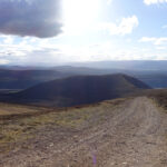 It was a fairly relaxed start to the day after the late night in the pub and spilling whisky in Pete’s Trailstar (which he skilfully hoovered up off the groundsheet). Most of the other challengers (approx 15 tents) had already scarpered, with just a few still packing away. Today we were to head over the Monadhliath to Cairn Ewen via the new Reservoir. Word reached us of a cocktail party at the remote Chalybeate Springs, which was on our route and just slightly short of where we planned to camp. It’s a good thing we did stop short really because the day was a long slog following the new wind farm service tracks for ~25km. JCBs in their plenty rushed by along the dusty track hour after hour, so not a pleasant walk. We were also pursued by a slow-moving roller-compactor for a while, but we seemed to get the better of it! Things improved vastly when we arrived at Chalybeate – dozens of challengers (Peter, Jayme, Mario, JJ, Martin, Keith, Andrew, Tim, Faz, Lindsey, Paula, Rob and Rebecca, Carl, Andy… the list goes on) were already there so we picked a spot amongst the tents and joined in the cocktail party (cheese, pate and whisky). It was a cold night so by around midnight most people had turned in.