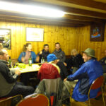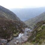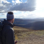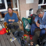 A lazy morning and we left Braemar around midday after a very nice Scampi and Chips in Gordon’s Tearooms and a resupply of food and whisky. We followed the golf course road out of Braemar, and taking the Callater Burn South we passed dozens of day walkers coming the other way. Arriving at Lochcallater lodge by late afternoon many challengers had already setup their tents on the grass next to the building. Squeezing inside we were suddenly amongst a great company of challengers. In fact, almost everyone we’d met to date, and for the first time Paddy, Gill, Dennis, Alan, Stevie, Aaron, Laurence and several others. We were fortunate enough to find a bunk in the bothy so we dropped our kit and went in the house for a beer! Bill who looks after the lodge opens it specially for the TGO each year and puts on food and drink for everyone that passes through. A great night of singing (Mick doing his Dustman song, Faz playing his whistle, JJ with some poetry, Pete did a Leonard Cohen rendition, Carl and Tim played guitar and sang a few songs). Bill made a toast and handed around the friendship cup which was full of Laphroaig. Everyone had to take a sip, make a short speech (some longer than others… Gill) and pass the cup on – this turned into a good laugh! “For f**** sake Tim don’t finish it!”. The singing went on into the night.