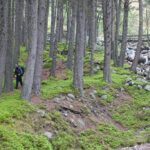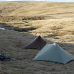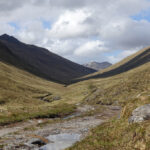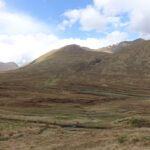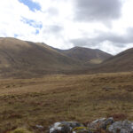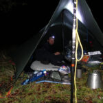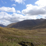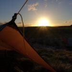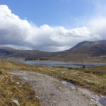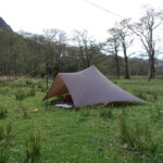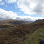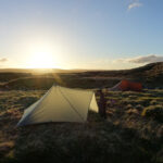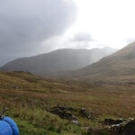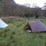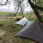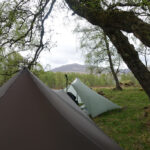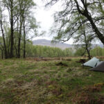 A sunny start to the day but with heavy showers forecast and a knee complaint (early teething problem), we opted to again stick low. Unfortunately today’s FWA had been the one we never wanted to use, because it meant 15km of ‘A’ road! Still, taking the FWA seemed like the safer option to allow some recovery, getting accustomed to the long days. Leaving the bothy we crossed a few burns and headed South along An Caorann Mor to Loch Cluanie, which the A87 runs alongside. Not the nicest of roads to walk, it was pathless and very busy. By coincidence we met a local police officer a few days later who said he see saw us and had nearly stopped to ask us to re-route. Apparently the stretch of road is notorious with accidents claiming over 6 lives a year. Eventually we arrived at the Ceannacroc Estate and found a nice spot to camp for the night. Space between tree roots was limited so we engineered a way to pitch the Trailstars close together, which worked great. A typical evening of pasta, soup and whisky followed.