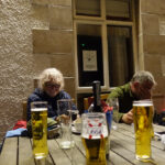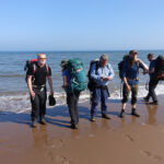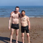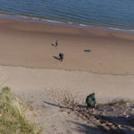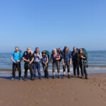 We grabbed a couple of sausage rolls from the butchers, left Edzell passing the airfield to North Water Bridge and made a slight detour to Marykirk (they have a pub). A portion of chips and a couple of pints later we continued on in the 30c heat to the coast. Passing through Charleton Farm we climbed the sand dunes over to Kinnabar Links. Toes dipped and a few photos we walked along the beach to Montrose. Arriving at the Park Hotel to sign out at 5pm we had a quick pint before tracking down our B&B for the night. One last hurdle was to get in touch with the B&B landlord who didn’t seem to want to answer their phone or the door! 7pm we managed to check in, get a quick shower and run back to the Park Hotel for the dinner. We’d missed the soup but made it for the main course. Pretty much everyone we met warned us of the “rubber chicken” at the hotel but we decided to have the meal as it was our first challenge. It was great meeting everyone again, some we’d not seen for two weeks, some we’d met a few times along the way and some we’d spent days walking with. We stayed for the speeches and awards for 10th, 20th crossing etc before heading into Montrose for a pint with Tim, Faz, Andy, Paula, Lindsey and Rob.