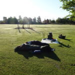 10am-ish start and off to The Retreat for breakfast 2km down the road from Tarfside. Then most of the day we followed the River North Esk with Tim, Faz, Carl, Paula, Lindsey, Andy, Rob and Rebecca to Edzell. The intention was to continue along to North Water Bridge, but the beer was too good to pass at the Panmure Arms Hotel. A vote was taken and it was therefore decided that we’d stay put and look for somewhere to camp later that evening. A few of the group managed to get rooms at the hotel but Faz, Tim, Lindsey, Andy, Pete and I left the pub after dark and “stealth bivvied” on the local park with a bottle of Prosecco (to blend in with the local youths). We got up early and packed away as to not arouse any suspicion.