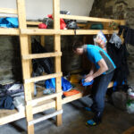 I got up fairly early and set off alone for The Falls of Glomach, from where I would make my way WEST to Shiel Bridge. I managed to get phone signal along the way and the great news came that Pete had finally got his pack thanks to the super human efforts of the courier (Inverness > Aberdeen> Shiel Bridge > Inverness). I met Pete (plus pack!) in Morvich later than anticipated around midday, so we took our foul weather alternative (FWA) route, following the River Core to Camban Bothy. Originally we’d planned to summit the 5 Sisters of Kintail but it was late in the day. This, coupled with the stress of the missing pack meant we decided to take it easy. Arriving at Camban Bothy we met two other Challengers, Tristan and Andy. A while later four lads arrived on mountain bikes, who stayed for the night and were headed to Morvich the next day, where we had just come from. That evening we heard mice scurrying around looking for food but luckily we’d hung everything up out of their reach, although Pete did catch one trying to join him in his sleeping bag! We read through the bothy book that morning and one particular (well-illustrated) entry was signed at the end “God speed you crazy bastards!” This became the phrase of our challenge.