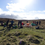 Leaving Glas allt-Shiel we walked along the track by Loch Muick and over to the Spittal of Glenmuick, where we had a coffee at the visitors centre. Heading South we followed a burn and a bearing to Shielin of Mark (bothy) for lunch. After lunch was more heather-bashing up to Muckle Carn and down the other side to Glen Lee. Walking along Loch Lee we stopped at the Eastern end by a bench for a rest. Sitting there we noticed a dead mouse part-squashed on the floor by the bench. Later we would learn that this mouse had travelled by JJ’s boot for at least that day. The story goes the mouse must have climbed in the night before, JJ put them on in the morning along with said mouse. It wasn’t until he stopped at the bench by Loch Lee and removed his boots that he made the discovery. By this time the mouse had sadly passed away (there was nothing we could do with our meagre first aid kits). Apparently surprisingly comfortable, so boot manufacturers take note! Continuing East past Hill of Rowan we arrived at Tarfside. We joined the other 40+ tents on the playing field and headed over to the bar for a pint and a burger. The bar which is not normally open to the public opens each year for the TGO. This year they’d put on a BBQ. By 10pm challengers had drank all the beer and started on the wine, by 11pm the wine was finished and we made a start on the whisky. Another great night had by all!