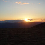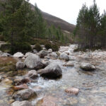 Rob left early for Aviemore while Pete and I packed our kit. We’d narrowed the route down to two options: a) follow the River Feshie around to Linn of Dee, or b) cross the Cairngorm Plateau. Heading out of Kingussie we met a few familiar faces such as Andy, Faz, Tim, JJ, and some people new to us, like Barry and Colin. A short road walk led us to the tracks over to the Feshie. This is a really picturesque area! We followed the Feshie South and stopped just before Ruigh Aiteachin bothy (not 100% sure of the name). This was the decision point in our route – whether to continue South and camp near the bothy (the more popular route among TGO-ers) or head East up onto the plateau. The sensible option was the low road, and we deliberated for over an hour, but having already missed out on some high points earlier in our route, we headed East. It’s a longish climb, approx +650m over 3-4km, and upon reaching the top we found a perfect spot. It was in a slight dip next to a burn and there wasn’t a breath of wind. A clear night, a great sunset and a dramatic view of The Angel’s Peak and Cairn Toul (tomorrow’s tasks) on the horizon. The temperature didn’t drop below 3c and the wind stayed off all night, perfect. Usual routine… pasta, soup, whisky.