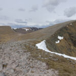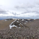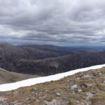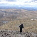 As we were packing kit away an early-rising challenger (didn’t catch his name) passed us. He’d camped by the bothy and walked up the way we had come. Soon afterwards we met Sabine, who had done the same thing. She was heading over to Tom Dubh. We set off for Angel’s Peak – navigating the moor and various bogs we made good time and summited munro #2, this time a better altitude of 1268m. Following the ridge East to munro #3 Cairn Toul (1291m) and then on to Stop Coire and finally Devil’s Point, munro #4 (1004m). We dropped down to Corrour Bothy, where we passed Tim and Carl heading up to bag Devils Point. We stopped for a breather at the bothy before following the Lairig Ghru South and on to Derry Lodge. Again we met Peter, Mario, Jayme, Tim, Faz, Lindsey, Paula, Carl, Rob and Rebecca, plus a few others whose names I didn’t get. There is a mountain rescue post at Derry Lodge along with a toilet/bucket – avoid this. The usual evening routine commenced.