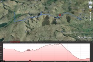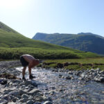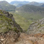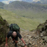 Another still night and bright warm morning, Dean was up early and had a swim. We sat by the stream Mosedale Beck (?) and had our breakfast before heading for Kirk Fell. The Black Sail Path winds slowly around the West side of Kirk Fell, reaching the Northern edge we followed the steep path at Kirk Fell Crags. Some recent land slippage as eroded the path, I’d not recommend this route. Instead look for a row of metal fence posts on the North West edge (southern side of the marked path). The route we took was a scree scramble involving some ballsy moves. Safely at the top of the crags we headed to the summit before dropping off the Eastern side towards Great Gable. The plan was to summit Great Gable however the heat and some tired legs amongst the group we opted to pass Great Gable via the lower North path to Windy Gap. Dean and Trevor took a break while I legged it up to Green Gable. We descended via the Aaron Slack path (very nice icy cold water here) to Styhead Tarn. Arriving at Sprinkling Tarn we pitched up and relaxed watching other fellow campers arrive through the evening. By the time it was dark around 4-5 other tents were dotted around the tarn, nicely spaced out and considerate of others (probably too far from the nearest carpark for the disposable BBQ chavs).