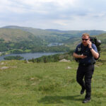 Our final day of the trip, yet another perfect night and sunny morning (that must be a record!). We’d discussed the idea of a swim in the tarn the evening before, not wanting to chicken out (Trevor!!), Dean and I went for a dip. It was as Baltic as expected! 10mins was enough. Before heading South East back to the car we nipped over to Seathwaite Fell for our 15th Wainwright of the trip. Whilst heading back from Seathwaite Fell to Sprinkling Tarn we were treated to a RAF Hawk low level flyby, screaming past at about the same altitude as us and up over Great End. Heading for Angle Tarn once again, I bagged Allen Crags and caught up with others to join the Cumbria Way path back to Trevors car. Trevor had parked at the New Dungeon Ghyll Hotel, we had some lunch before Trevor drove Dean and I back to my car over at Elterwater.